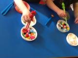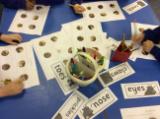 Every day we have been improving our fine motor skills and maths with various challenges for the children, like threading cheerios onto spaghetti, and counting out beads onto pipe cleaners.