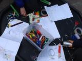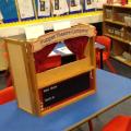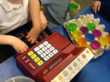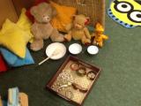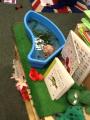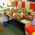 We have also used the role play area as a school, where the children took turns to be the teacher and the leader. The children enjoyed writing the register and giving out pretend 'pot of gold' stickers for good behaviour.