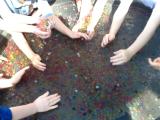 All the children came up with a long list of words, which they think shows nasty and mean behaviour. They then stamped on these words with wellies dipped in paint. These words included things like: snatching, pinching, being mean to one another, saying nasty things, and pushing. They then thought of ways in which they could stamp out bullying. They wrote words like: smile, kindness, helpful, friendly, and sharing. We then made up a class poem from the words and we are going to perform this on Monday.