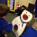 Daniel has been really creative outside too making faces outside with Jim!